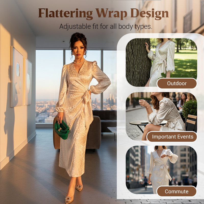 ELEGANT WRAP DESIGN - The V-neck and tie-waist create a flattering silhouette for all body types. This classic style accentuates your curves and allows for an adjustable fit, ensuring you look and feel confident.