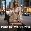 Women's Elegant Leopard Print Tie-Waist Dress
